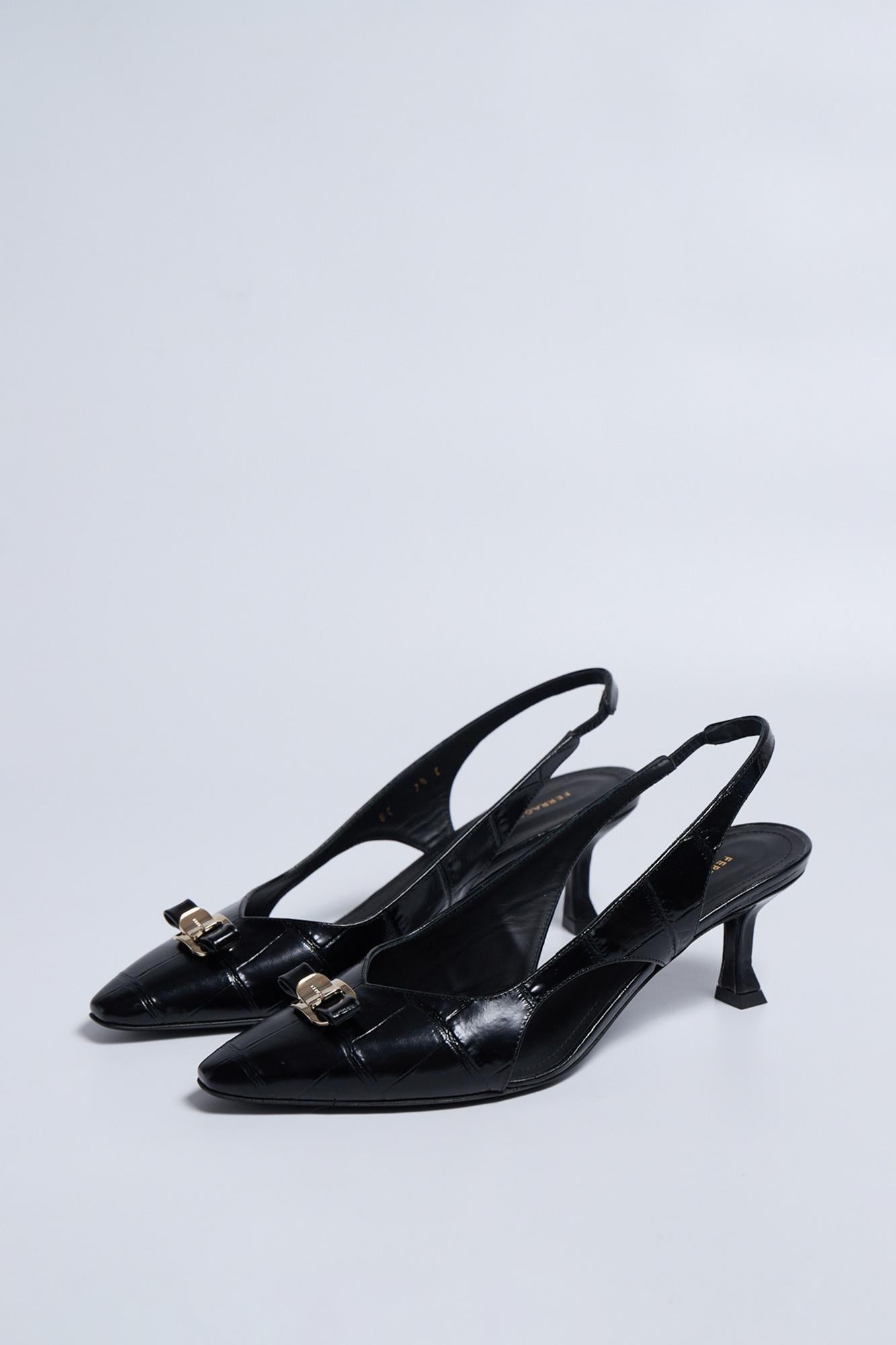 Абсолютно розкішні слінгбеки Ferragamo зі шкіри з тисненням. Модель має збільшену повноту, чудова посадка. висота підборів 7.5см, внутрішнє оздоблення та підошва зі шкіри, довжина устілки 25см. Виробництво Італія