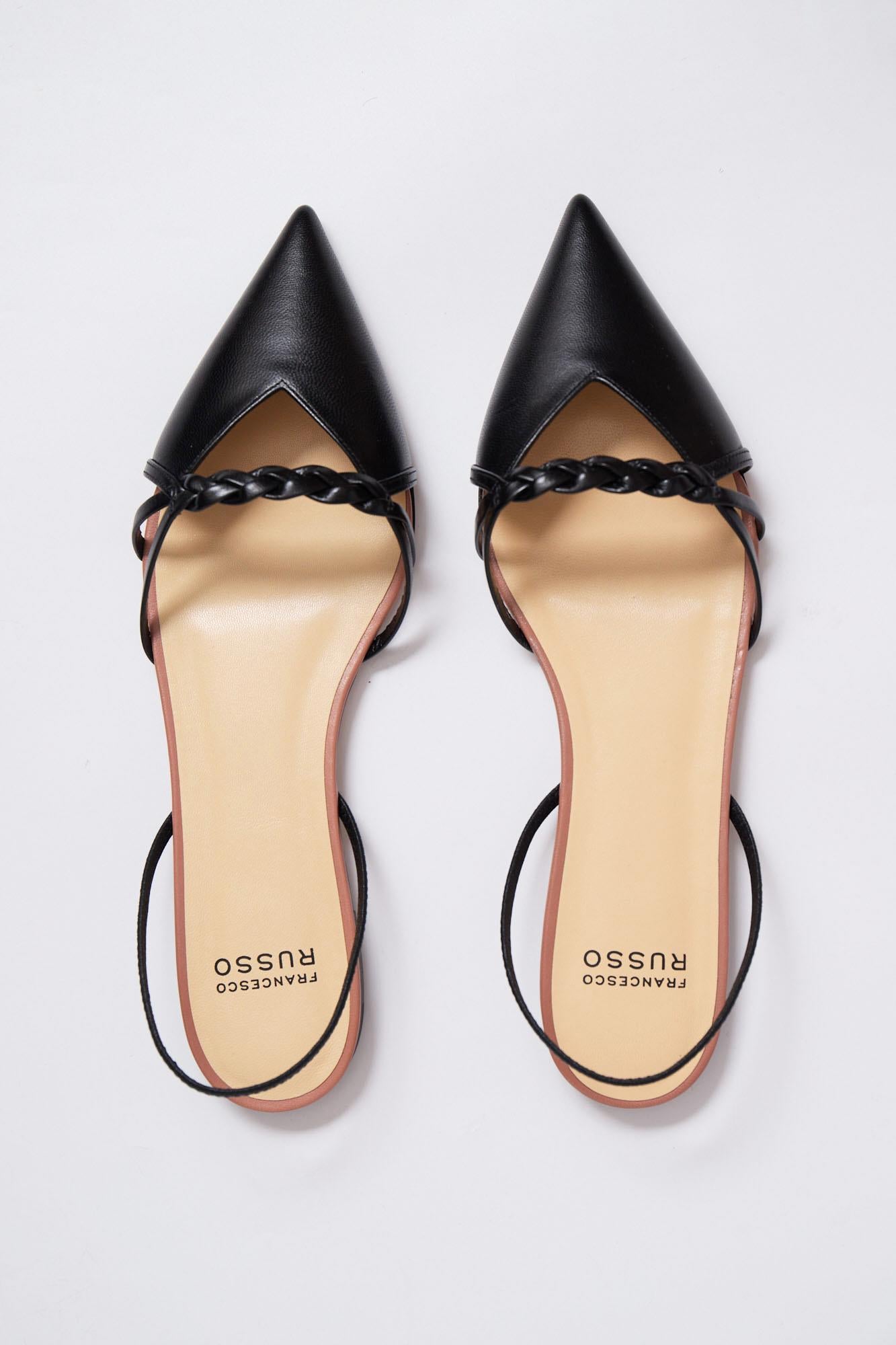Тендітні та витончені слінгбеки з мʼякої шкіри від Francesco Russo. Модель має устілку 25.5см, внутрішнє оздоблення та підошва зі шкіри. Виробництво Італія