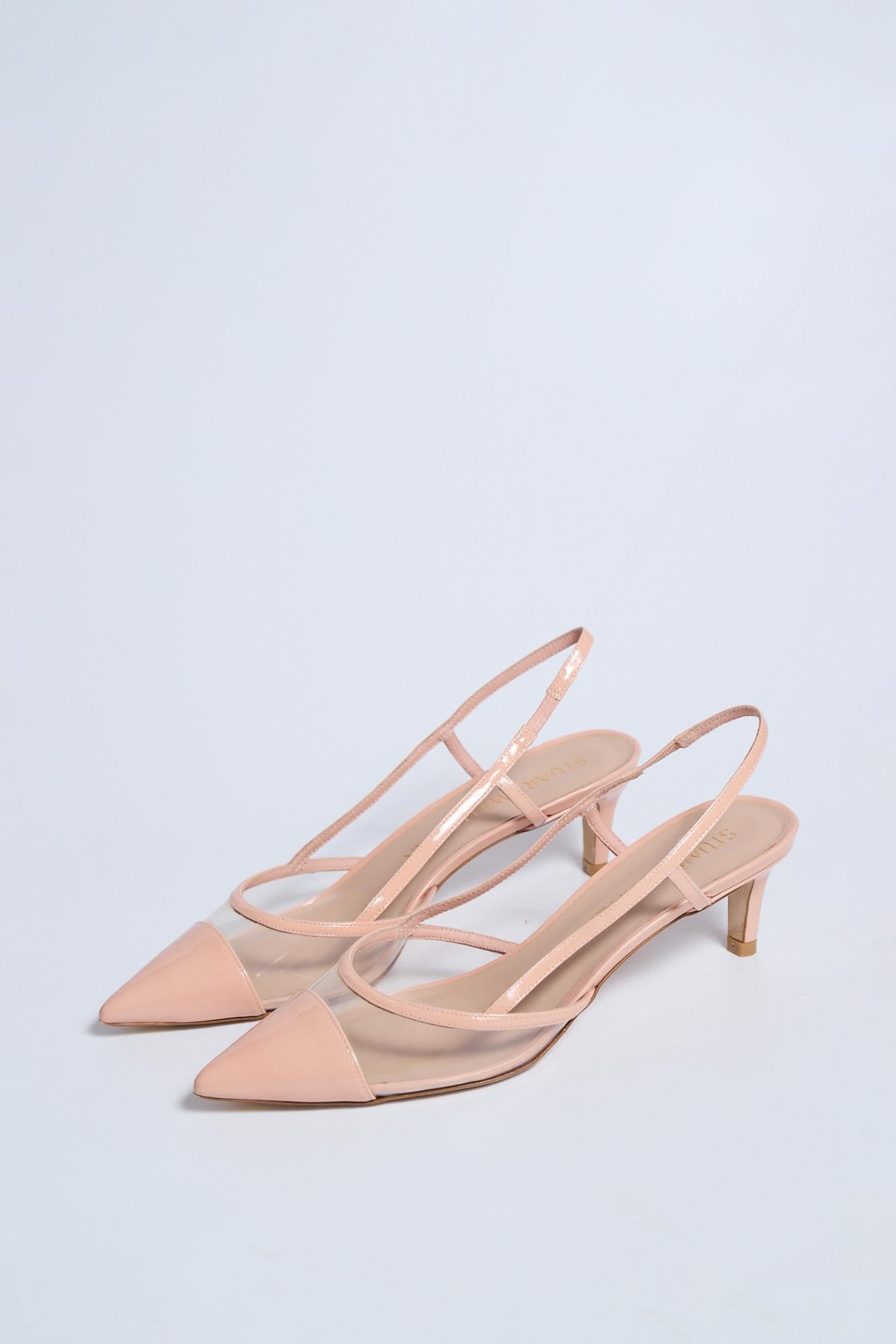 Витончені слінгбеки з прозорими вставками Stuart Weitzman. Модель з лакової шкіри та силікону, внутрішнє оздоблення та підошва зі шкіри. Висота підборів 6см, устілка 25.5см Виробництво Іспанія